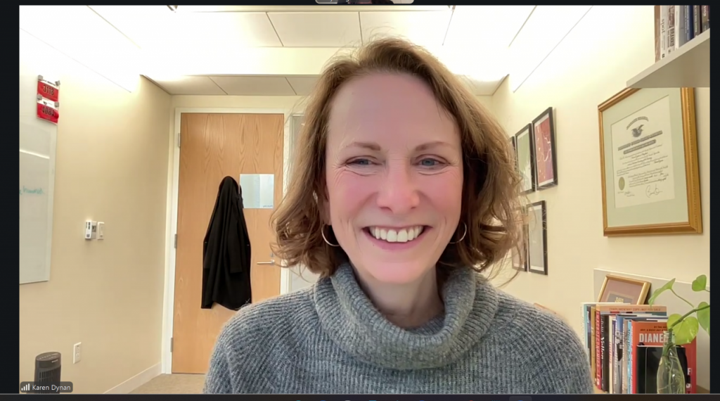 캐런 다이넌 미국 하버드대 경제학과 교수가 2026년 미국 경제 전망을 주제로 아시아경제와 화상으로 인터뷰를 하고 있다. 뉴욕=권해영 특파원