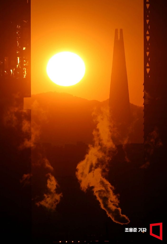 체감온도가 영하 20도까지 떨어지며 올 겨울들어 가장 추운 날씨를 보인 26일 서울 종로 한 건물에서 바라본 도심의 빌딩들이 난방을 가동하며 수증기를 내뿜고 있다.