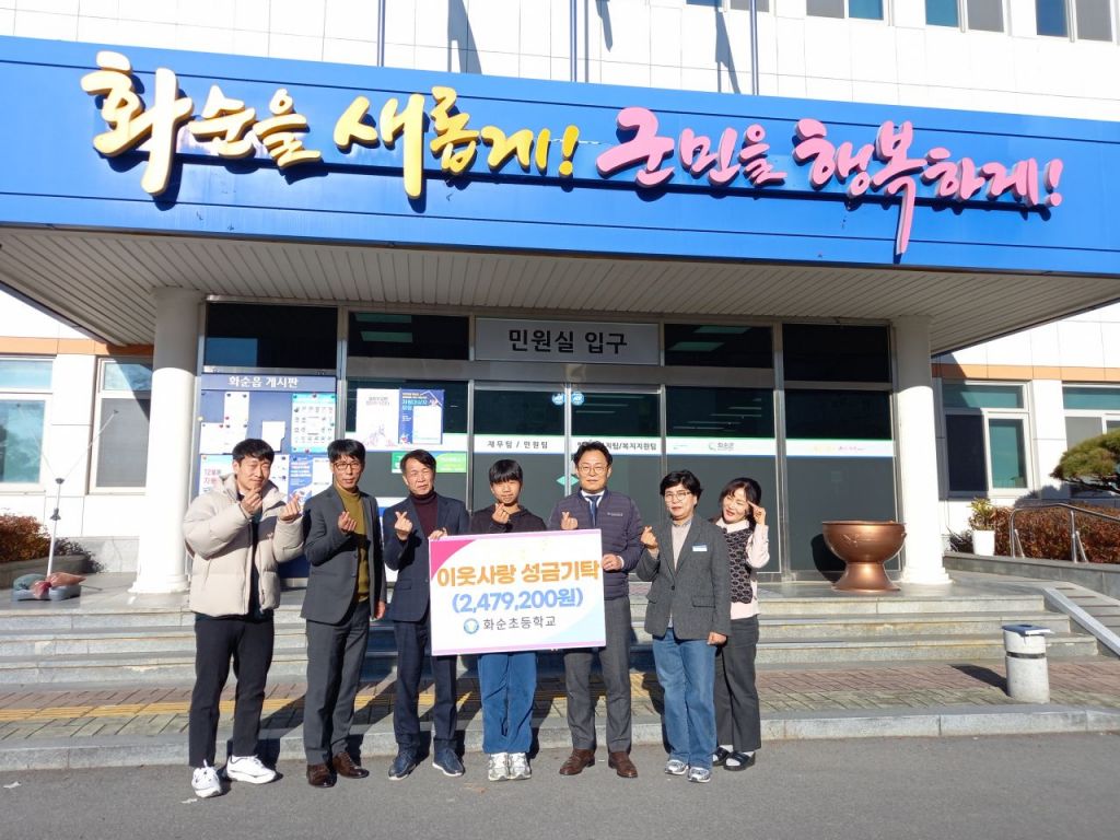 전남 화순읍행정복지센터(읍장 조영일)는 지난 22일 화순초등학교(교장 조영래)가 저소득층 지원을 위해 성금 약 250만원을 기부했다고 26일 밝혔다.