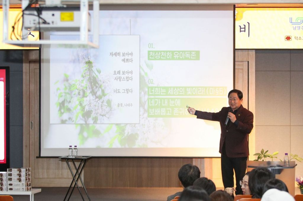 이날 특강에서 주광덕 시장은 "나다운 삶은 자기 자신을 존귀한 존재로 여기는 마음에서 시작된다"며 부처님의 말씀 '천상천하 유아독존'과 성경 구절 '너희는 세상의 빛이라'를 예로 들어 청소년들에게 자신에 대한 믿음과 자존감을 강조했다.