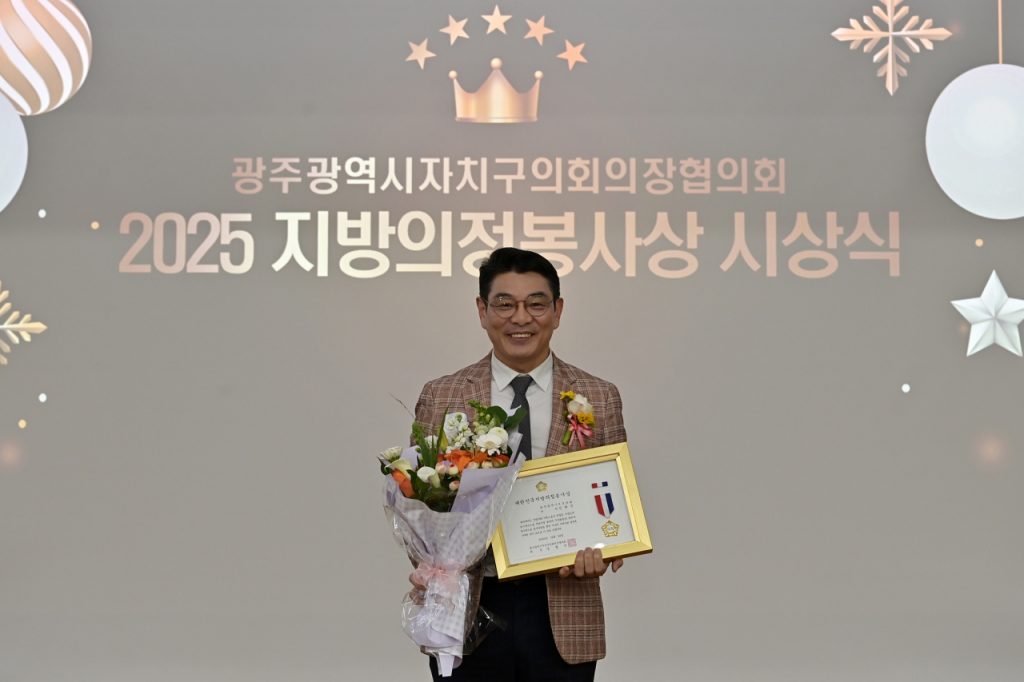 김태진 광주광역시 서구의원이 최근 열린 광주광역시 자치구의회의장협의회에서 '대한민국 지방의정봉사상'을 받았다.