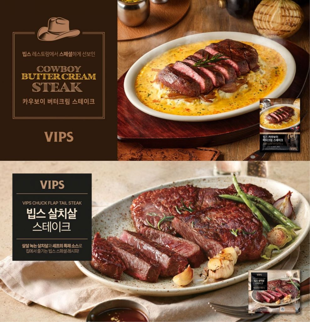 먼저 '카우보이 버터크림 스테이크'는 매장에서 큰 사랑을 받아온 메뉴를 간편식 형태로 구현한 제품이다. 미국산 살치살을 두툼하게 사용해 육즙과 부드러운 식감을 살렸으며, 최근 SNS에서 인기를 얻고 있는 '카우보이 버터크림' 소스를 더해 풍미를 강화했다. 고소한 버터에 마늘, 양파, 각종 향신료, 휘핑크림을 더한 크림소스로, 빕스만의 레시피로 재해석해 깊은 맛을 구현했다.
