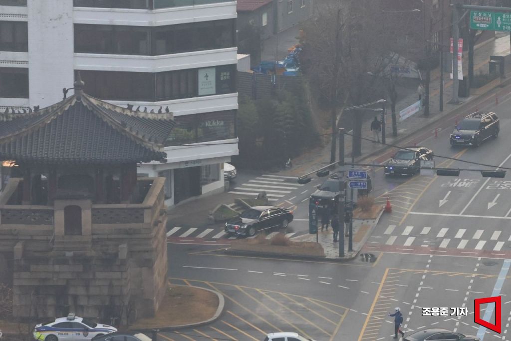 이재명 대통령이 탄 차량 행렬이 29일 오전 서울 경복궁 인근을 지나 청와대로 향하고 있다. 대통령이 청와대로 출근하는 것은 문재인 전 대통령이 마지막으로 출근한 퇴임일인 2022년 5월 9일로부터 3년 7개월만이다.