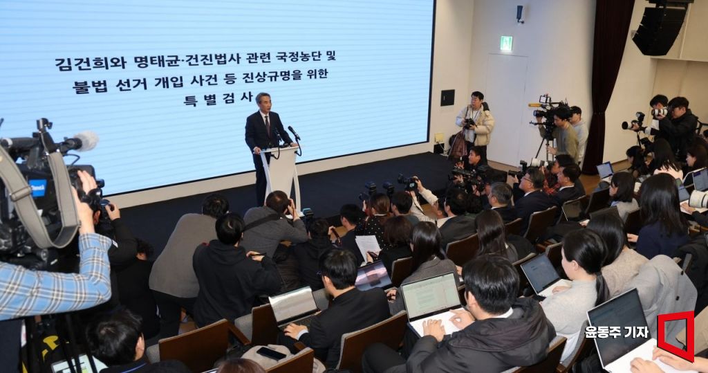 김건희와 명태균·건진법사 관련 국정농단 및 불법 선거 개입 사건 등 진상규명을 위한 특별검사팀 민중기 특별검사가 29일 서울 종로구 KT광화문빌딩 웨스트에 마련된 특별검사팀 브리핑룸에서 특검 수사 결과를 발표하고 있다. 2025.12.29 윤동주 기자