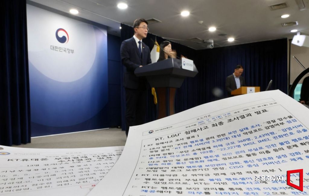 류제명 과학기술정보통신부 차관이 29일 서울 종로구 정부서울청사에서 KTㆍLGU+ 침해사고 조사 결과 관련 브리핑을 하고 있다.
