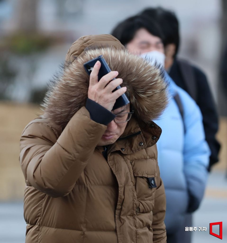 기온이 큰 폭으로 떨어지며 영하권 강추위를 보인 지난 26일 서울 종로구 광화문광장을 지나는 시민들이 발걸음을 서두르고 있다. 윤동주 기자