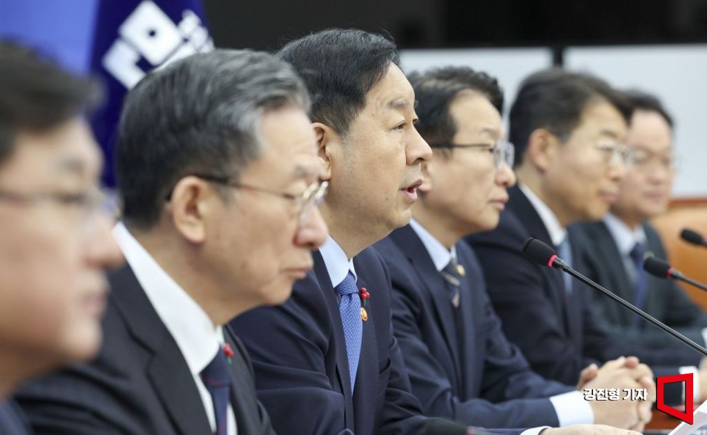 구윤철 경제부총리 겸 기획재정부 장관이 30일 서울 여의도 국회 민주당 원내대표실에서 열린 '경제형벌 민사책임 합리화 제2차 당정협의'에 참석해 모두발언 하고 있다.