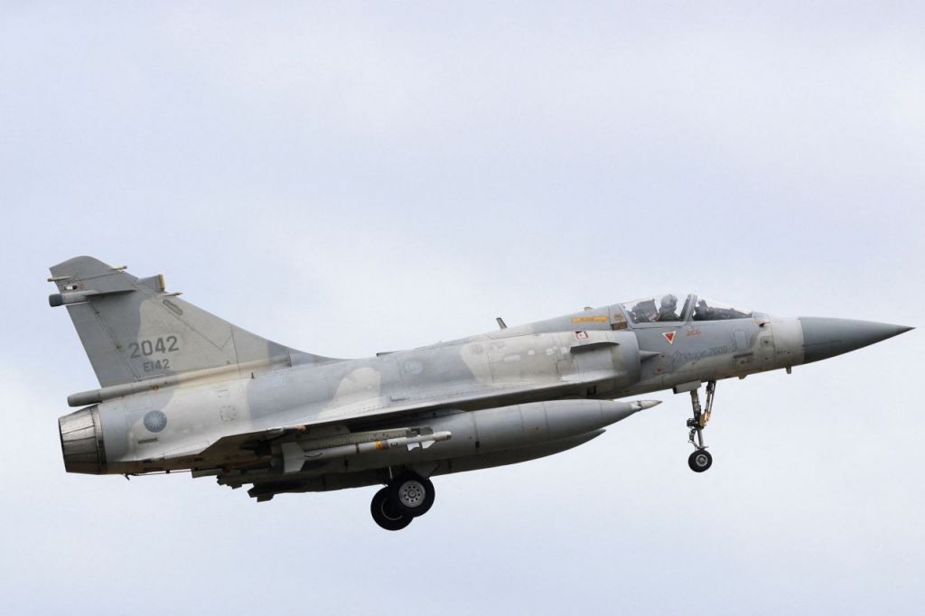 30일(현지시간) 중국 인민해방군 동부전구가 대만 포위 군사훈련을 실시하는 가운데 대만 신주 공군기지에서 대만 공군 미라주 2000 전투기가 비행하고 있다. 로이터연합뉴스