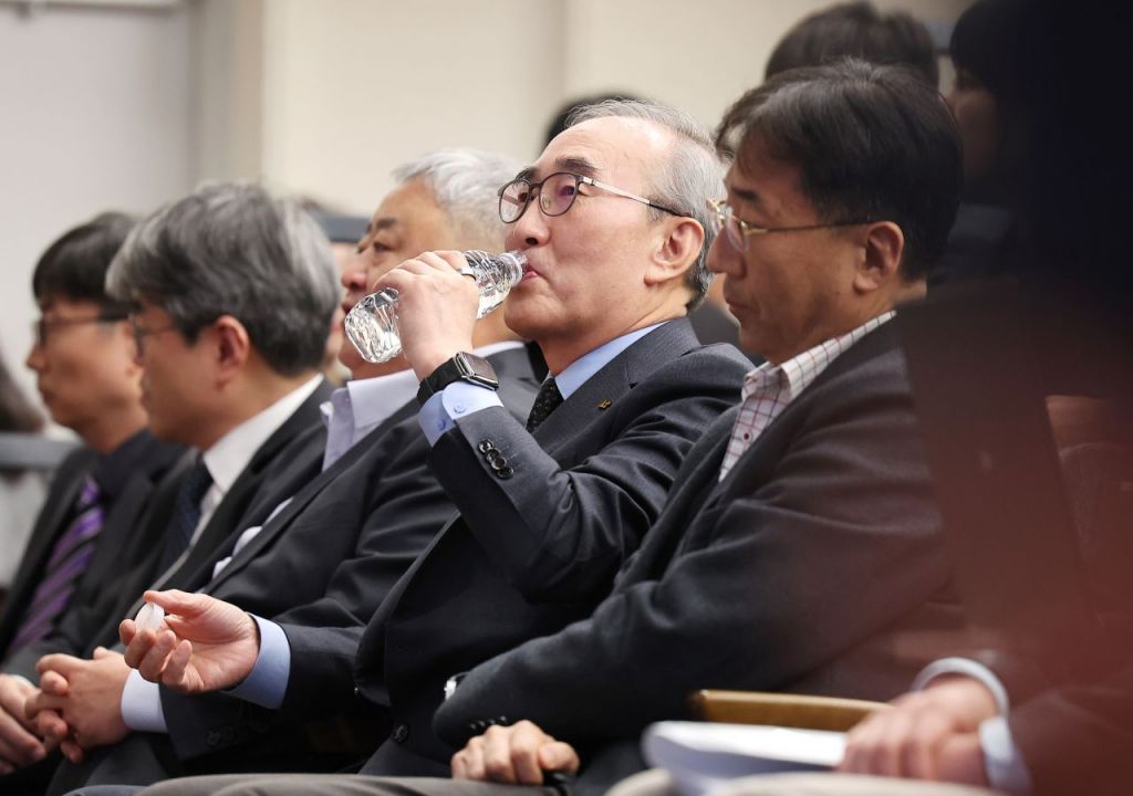 김영섭 KT 대표가 30일 서울 종로구 광화문 사옥에서 열린 무단 소액결제 사태 및 해킹 사고 등과 관련한 기자브리핑을 마치고 퇴장하고 있다. 연합뉴스