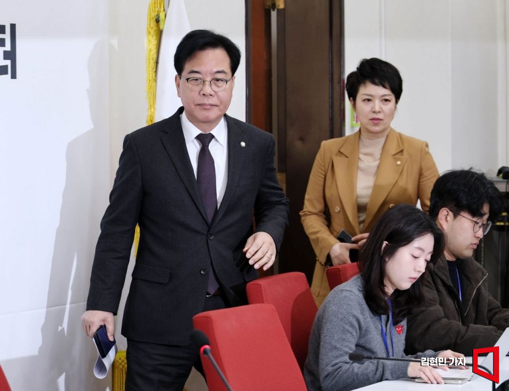 [포토] 기자간담회 참석하는 송언석-김은혜