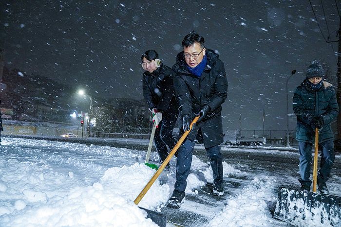 아울러 시민 보행 안전을 위해 2일 오전 6시부터 전 직원을 비상 소집해 담당 구역별로 인력을 배치하고, 인도와 버스승강장, 횡단보도 등 보행자 통행이 잦은 구간을 중심으로 인력 제설을 병행했다.