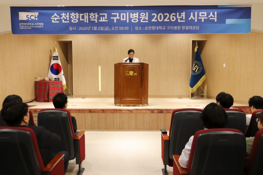 순천향대학교 구미병원(병원장 김성호)은 2일 오전 8시 본원 향설대강당에서 2026년 시무식을 개최했다.