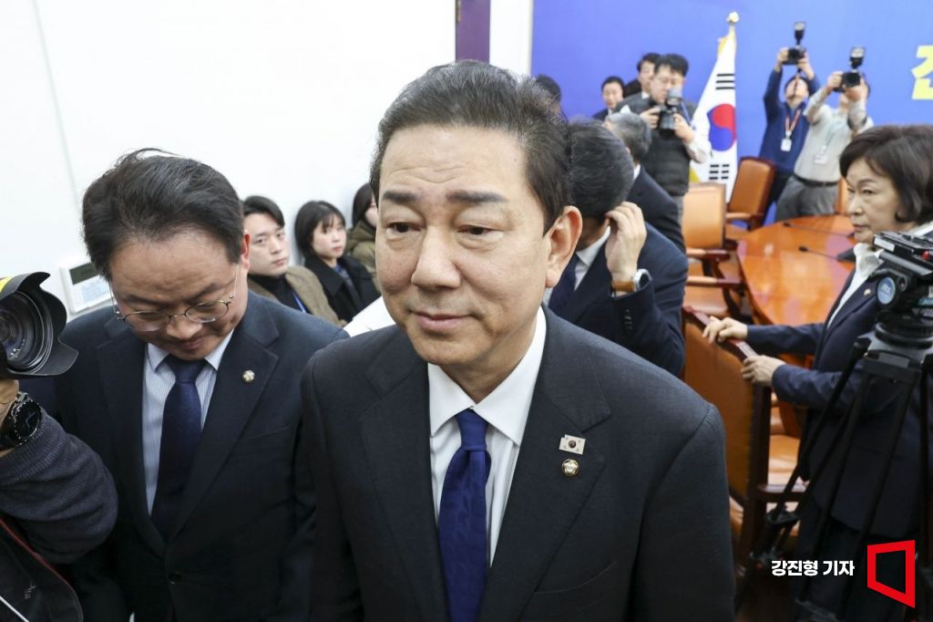 김병기 더불어민주당 원내대표가 30일 서울 여의도 국회에서 열린 원내대책회의에서 원내대표직 사퇴 입장을 밝힌 뒤 이동하고 있다. 2025.12.30 강진형 기자