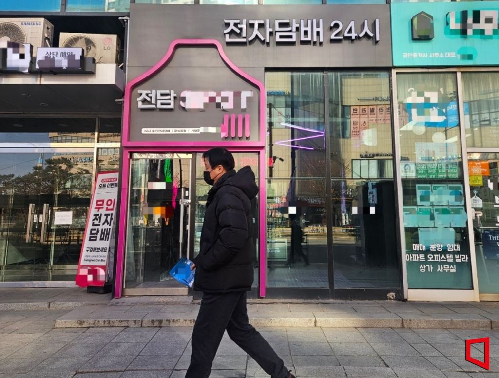 5일 한 시민이 서울 성동구의 전자담배 판매점을 지나가고 있다. 박승욱 기자