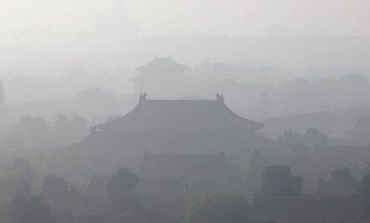 중국 베이징 자금성이 짙은 스모그에 덮여 뿌옇게 보이는 모습. 연합뉴스