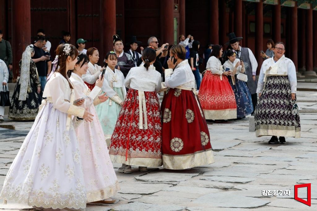 중국인 단체관광객에 대한 무비자 입국이 시행된 지난해 9월 29일 서울 종로구 경복궁을 찾은 중국인 관광객들이 즐거운 시간을 보내고 있다. 강진형 기자