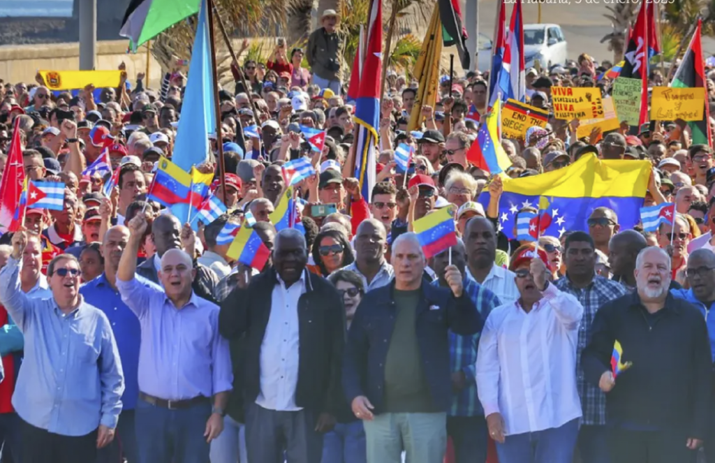 미국이 니콜라스 마두로 베네수엘라 대통령을 체포해 미국 압송한 후, 쿠바인들이 3일(현지시간) 쿠바 하바나에서 베네수엘라에 대한 연대를 표명하는 집회에 참석했다. 쿠바 정부 인스타그램