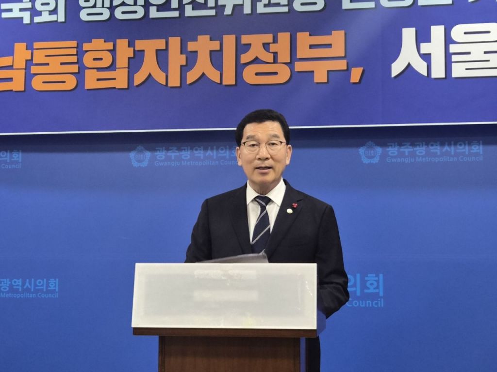 신 위원장은 6일 오후 광주시의회 브리핑룸에서 기자회견을 열고 "광주·전남 통합은 단순한 행정구역 개편이 아니라 분권형 국가로 가는 첫 시험대"라며 "행안위원장으로서 '광주·전남 통합특별법'을 신속히 처리하겠다"고 말했다.