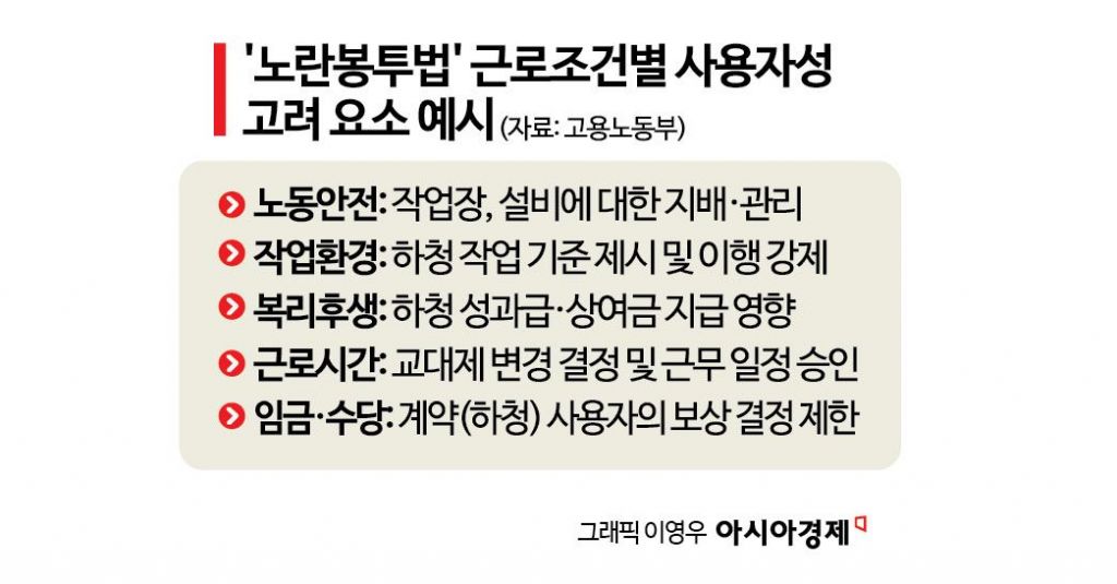 가장 큰 쟁점은 개정법의 핵심인 '사용자성 판단' 기준이다. 지침에 따르면 직접 근로계약 관계가 없더라도 원청이 하청 노동자의 근로조건을 '구조적 통제'하는 경우 사용자성을 인정할 수 있다고 했다. 근로조건을 실질적으로 지배·결정하는 자까지 사용자성을 포함하도록 확장한 것이다. 핵심은 단발적·일시적 개입이 아니라, 원청이 하청 사용자의 근로조건 결정 자율성을 지속적으로 제약·통제하는 거래 구조가 존재해야 한다는 점이다. 구체적인 판단 요소는 근로시간·휴식시간, 인력 투입 규모, 노동안전 관리체계, 임금 결정 방식 등이다.
