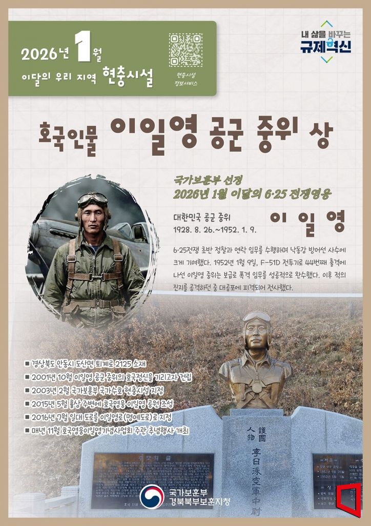 국가보훈부가 안동 출신 이일영 공군 중위를 '2026년 1월 이달의 6·25전쟁 영웅'으로 지정한 데 따른 후속 조치다.