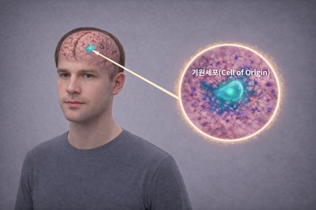 뇌 속 난치성 뇌종양 '기원세포'가 규명돼 뇌종양 조기진단과 재발 억제 치료의 패러다임 전환을 기대할 수 있게 됐다. KAIST 제공(AI 생성 이미지)