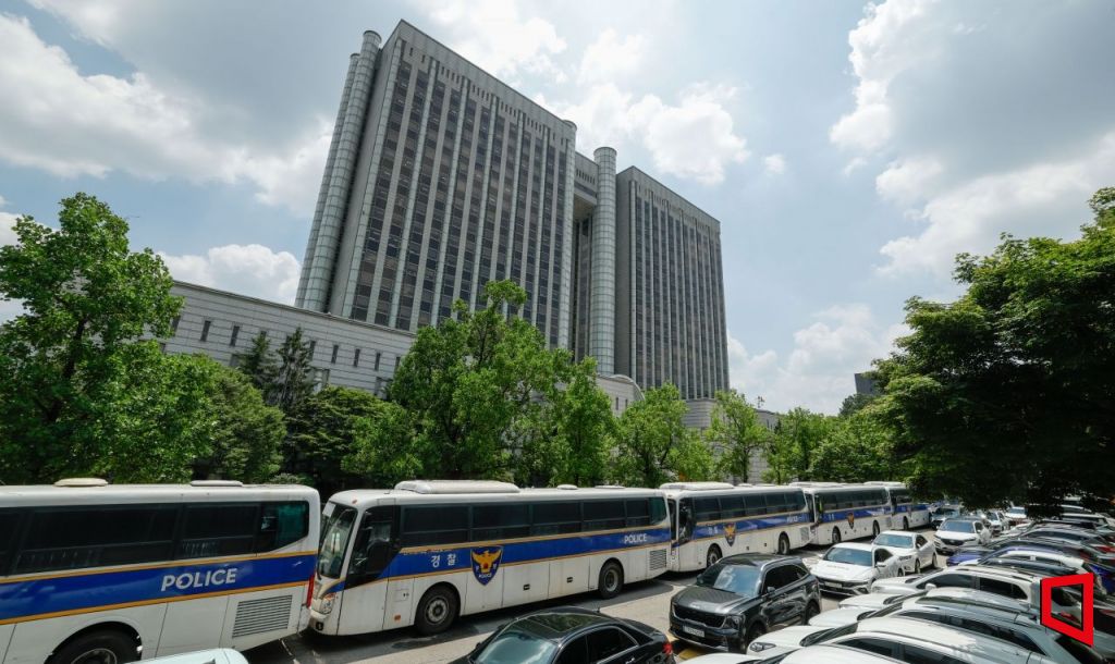 윤석열 전 대통령의 구속 여부를 가를 구속영장실질 심사가 열리는 9일 서울 서초구 서울중앙지방법원이 경찰 차 벽 등으로 경계가 삼엄한 모습을 보이고 있다. 2025.07.09 사진공동취재단