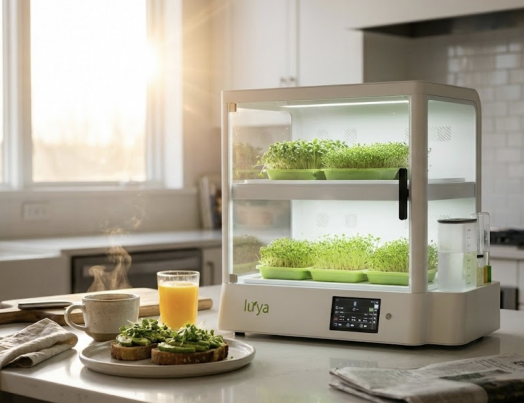 루야 AI의 제품은 어린잎 채소 씨앗이 올라간 받침대를 넣고 물을 추가하면 AI가 사용자를 분석한 뒤 7~14일 만에 재배가 끝난다. 현재 무순과 케일, 바질을 비롯해 총 30종의 씨앗을 재배할 수 있다. 완두콩 새싹은 한달에 6kg까지 생산할 수 있으며 대부분 잎채소는 2.5kg 규모 생산이 가능하다. 2.5kg의 채소는 미국 대형마트인 홀푸드에서 판매하는 채소 박스 약 38개 상당이라고 설명한다.
