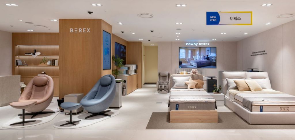 신규 매장에서는 슬립 및 힐링케어 브랜드 '비렉스(BEREX)'의 ▲의료기기 마사지셋·코어셋 ▲트리플체어 안마의자 ▲스마트 매트리스 등 다양한 제품을 자유롭게 살펴볼 수 있다. 아울러 아이콘 정수기 시리즈와 노블 공기청정기 등 베스트셀러 제품뿐만 아니라 코웨이의 혁신 기술력이 집약된 신제품까지 한자리에서 경험할 수 있다.