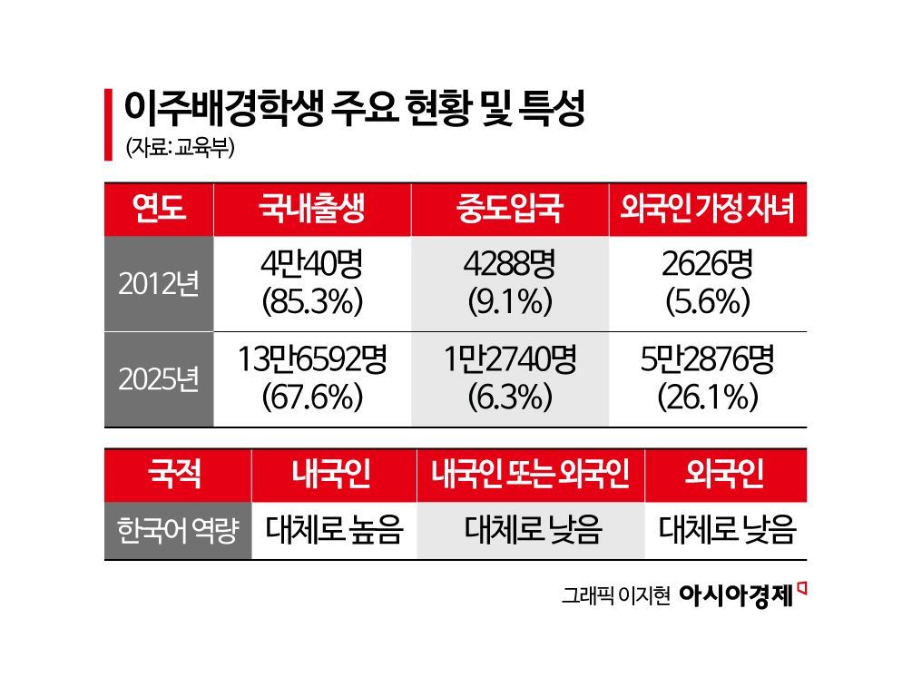 국내에서 태어난 이주배경학생들은 어릴 때부터 한국어 환경에 노출돼 있어 소통에 큰 어려움이 없지만, 중도에 입국했거나 부모 모두 외국인으로 중·고등학교에서 곧바로 한국 생활에 적응해야 하는 아이들은 한국어 역량이 대체로 낮다. 한국어를 모르는 이주배경학생이 급증하고 있는 현 상황에 맞는 교육 지원 체계가 필요하다는 목소리가 나온다.