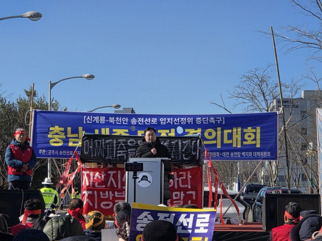 김종민 국회의원이 지난 8일 대전세종충남 송전선로 백지화 대책위 집회에서 "국가 1년 치 예산과 맞먹는 첨단산업 투자 620조원 중 90%인 560조를 수도권에 또 편중시키면, 대한민국 미래 100년은 잘못된 길로 간다.”라고 말했다./김종민 의원실