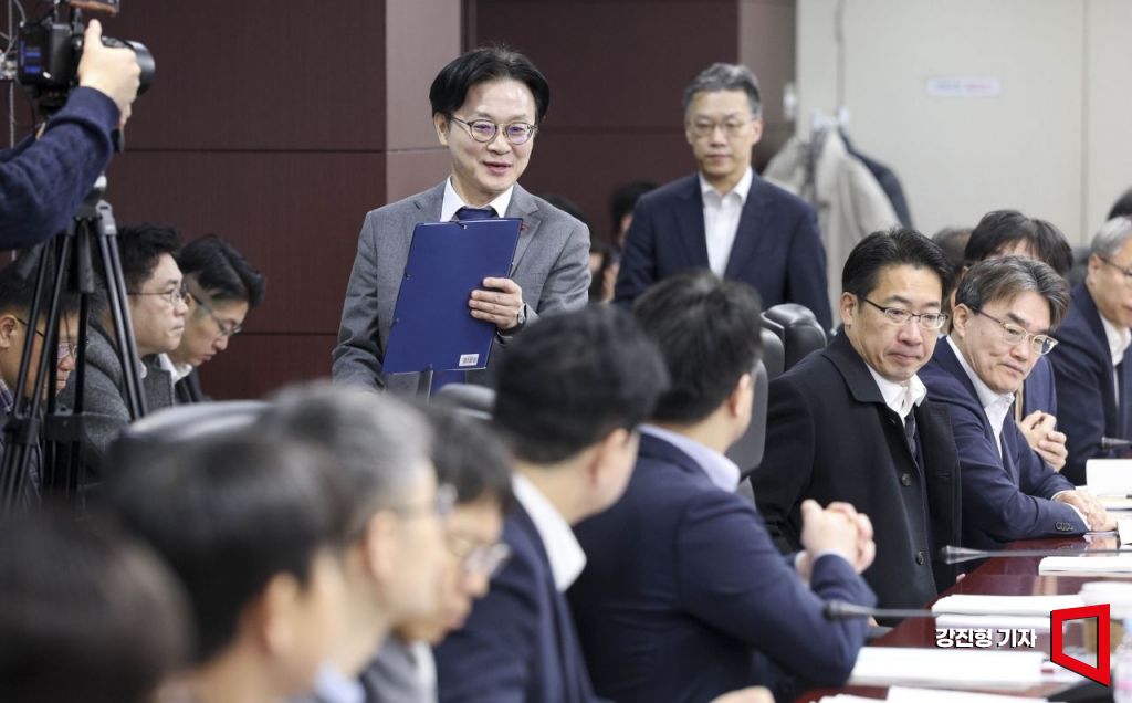 [포토] 회의실 들어서는 김정관 산업부 장관