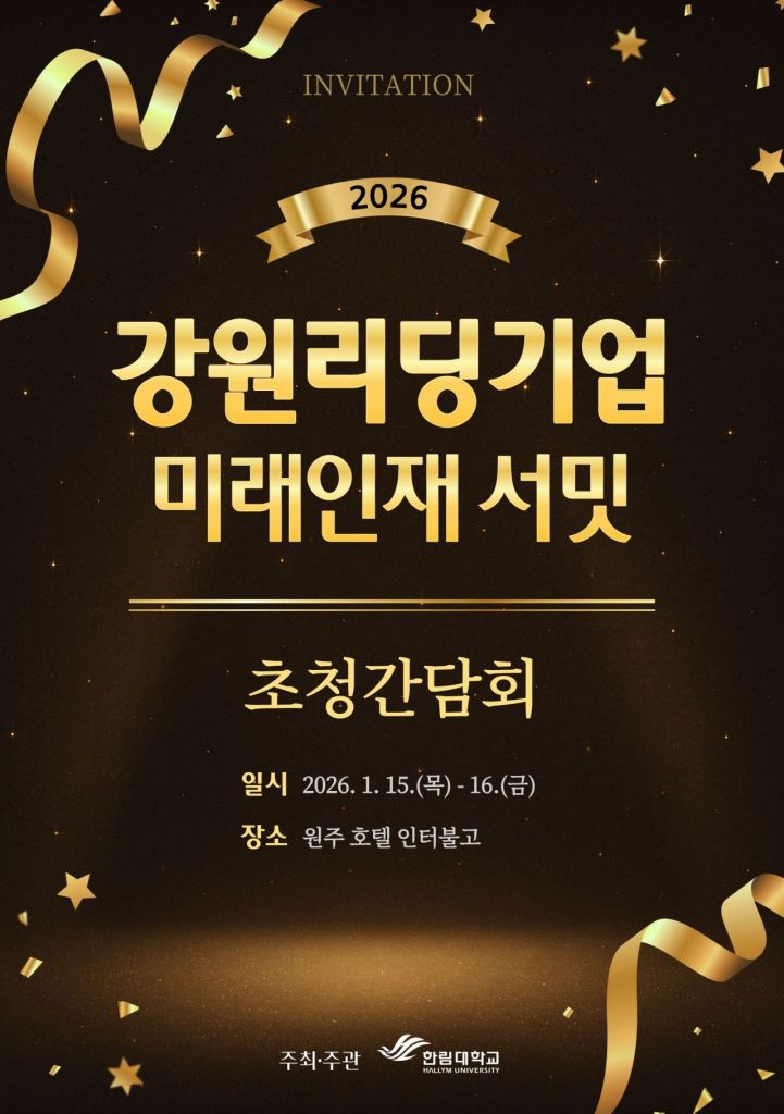 한림대학교(총장 최양희)가 오는 15일부터 16일까지 양일간 호텔 인터불고 원주 루비홀에서 '2026 강원 리딩기업 & 미래인재 서밋'을 개최한다.