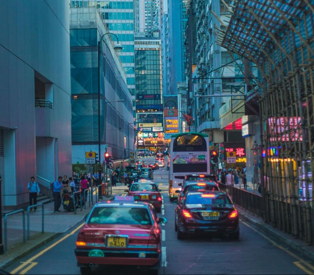 홍콩 시내 도로 위의 자동차 이미지. 펙셀스