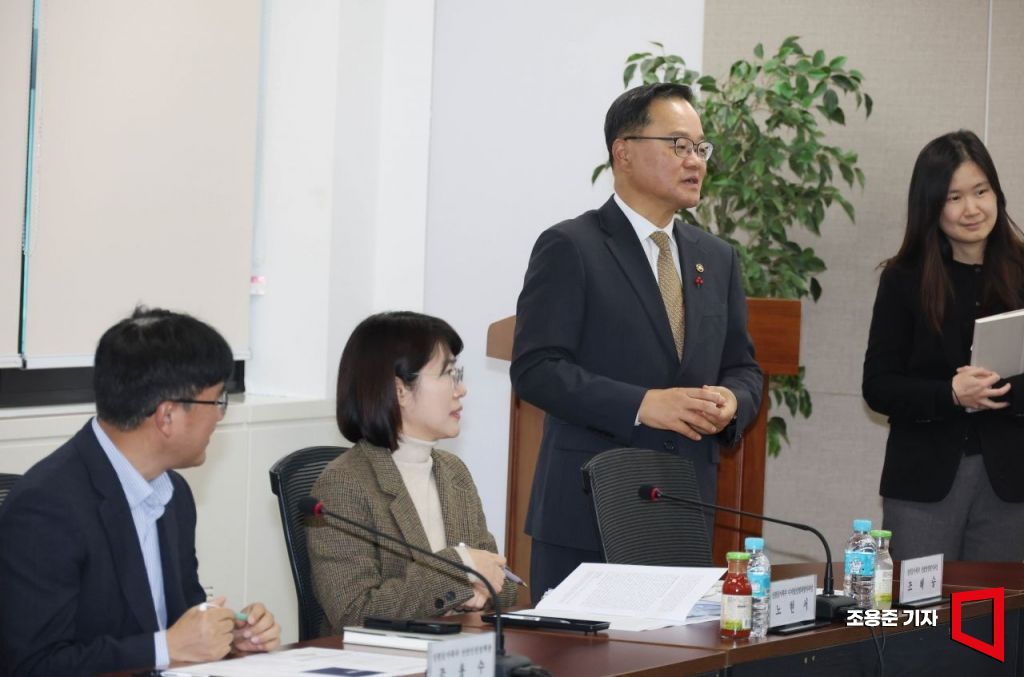 정구창 성평등가족부 차관이 9일 서울 종로구 정부서울청사에서 열린 AI 성평등 정책포럼에 참석해 위원들과 대화를 나누고 있다.