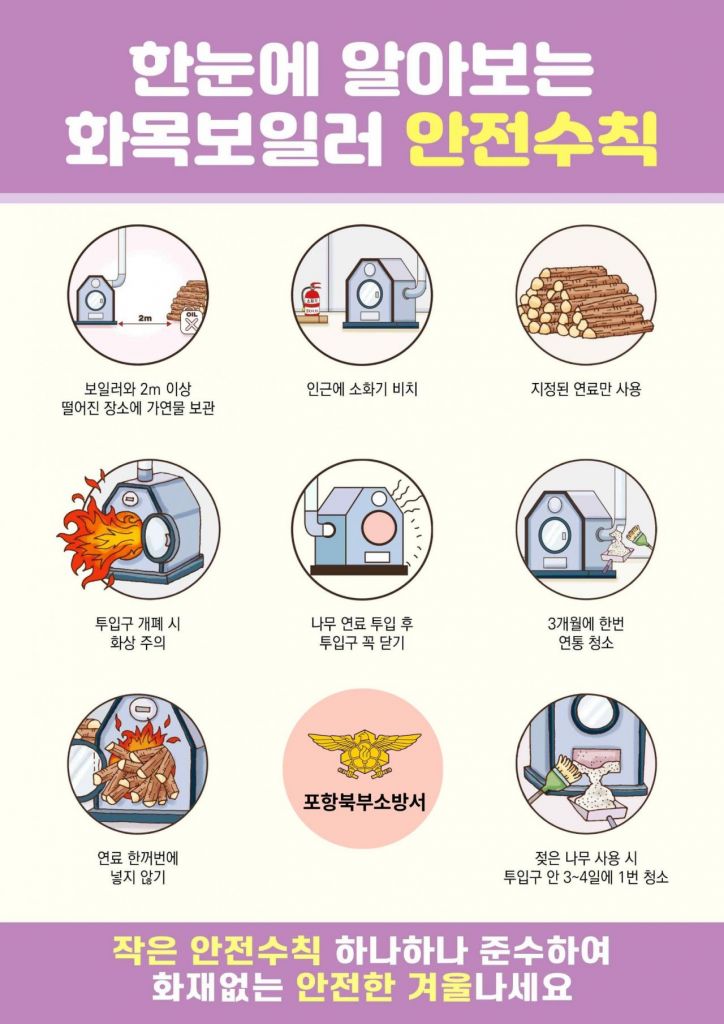 포항북부소방서(서장 김장수)는 최근 겨울철 화목보일러 사용이 증가하며 화재 위험이 높아짐에 따라, 2월까지 화재 예방을 위한 종합 안전대책을 추진한다.