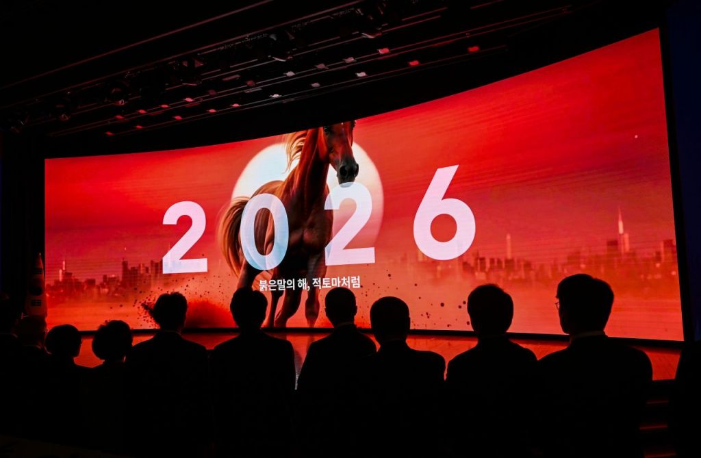 김민석 국무총리를 비롯한 경제계 인사들이 지난 2일 오후 서울 중구 대한상공회의소 국제회의장에서 ‘2026 경제계 신년인사회’를 하고 있다.