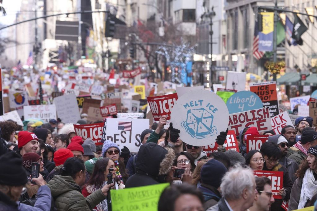 11일 미국 뉴욕에서 시민들이 플래카드를 들고 행진하고 있다. EPA연합뉴스