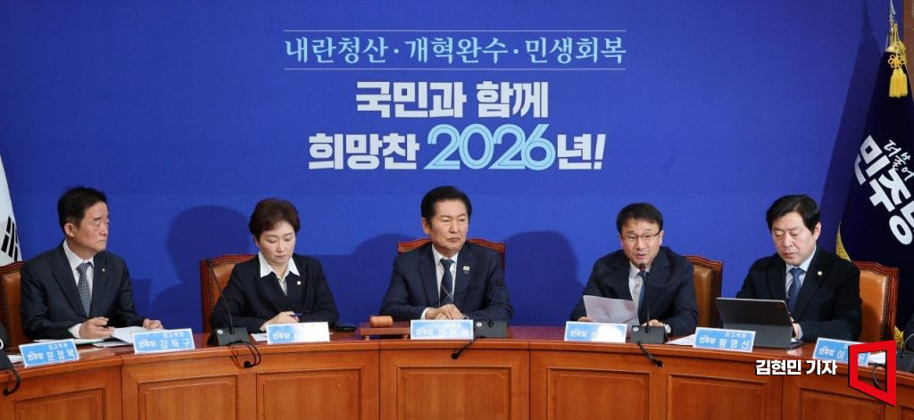 한병도 신임 더불어민주당 원내대표가 12일 국회에서 열린 최고위원회의에서 발언하고 있다. 2026.1.12 김현민 기자