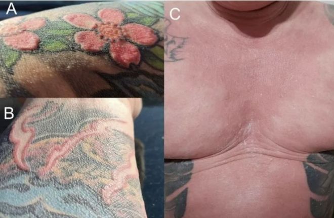 9일(현지시간) 영국 매체 더 선에 따르면 폴란드의 한 36세 남성은 지난 2020년 팔뚝에 빨간색 꽃 문신을 한 뒤 심각한 신체 이상을 겪었다. 문신 시술 약 4개월 후부터 극심한 가려움증과 피부 벗겨짐, 발진이 나타났고 증상은 팔뚝에서 가슴을 거쳐 전신으로 빠르게 확산했다.