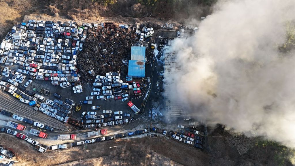 이 불로 폐차장 건물 1동이 완전히 잿더미가 됐고 내부에 있던 자동차 부품, 지게차 5대, 트럭 4대, 공장 내부에 있던 자동차 부품 등도 까맣게 탔다.
