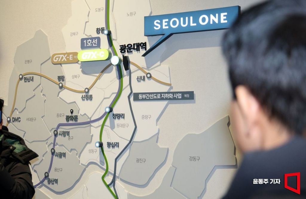 오세훈 서울시장이 12일 서울 노원구 월계동 광운대역 물류부지 공사현장을 찾아 HDC현대산업개발이 시공중인 'SEOUL ONE' 현장에 마련된 모델 하우스를 둘려보고 있다.