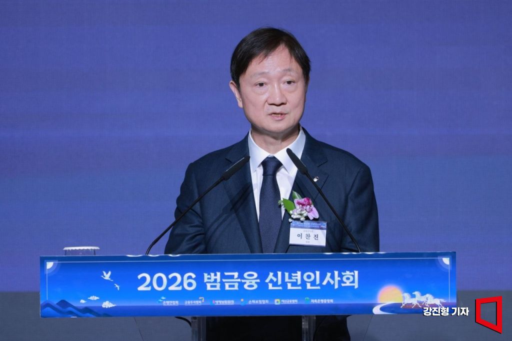 이찬진 금융감독원장이 5일 오후 서울 중구 롯데호텔에서 열린 '2026 범금융 신년인사회'에서 신년사 하고 있다. 2026.1.5 강진형 기자