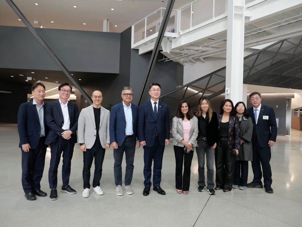 류제명 과기정통부 2차관(왼쪽 다섯번째)이 엔비디아 본사를 방문해 제이 퓨리 수석부사장(왼쪽 네번째)과 기념촬영을 하고 있다. 오른쪽에서 네번째가 엔비디아에 몸담고 있는 세계적인 AI석학 최예지 스탠퍼드대 교수다. 사진=과기정통부