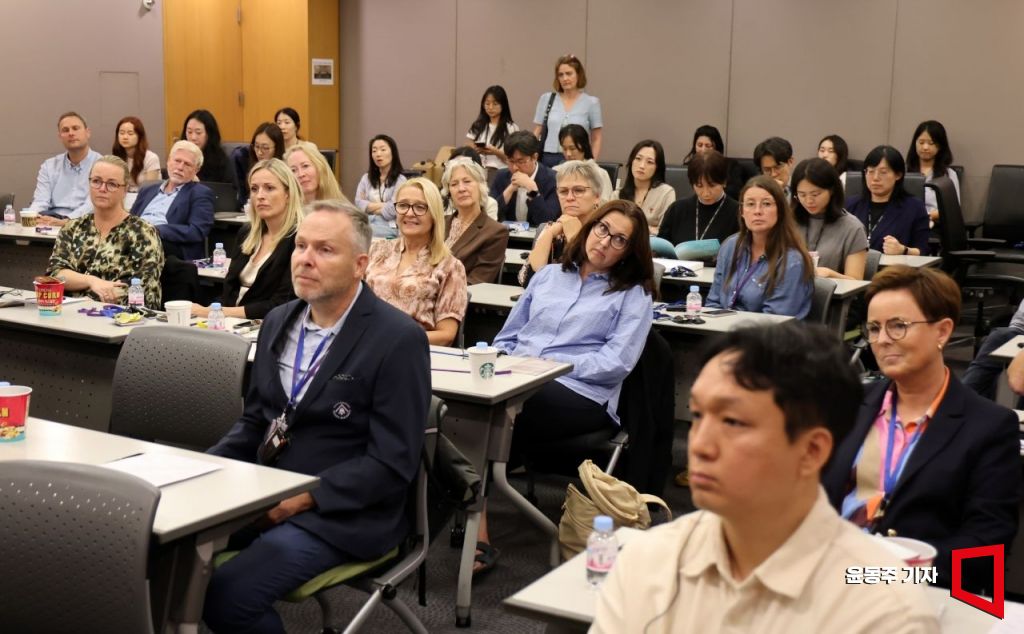 한국을 방문한 덴마크 초·중등 사립학교 교장들과 한국 교육관계자들이 지난해 9월 주한덴마크대사관에서 국제공동수업 및 덴마크 교육계와 교류등에 관한 주제로 토론을 하고 있다. 2025.09.22 윤동주 기자