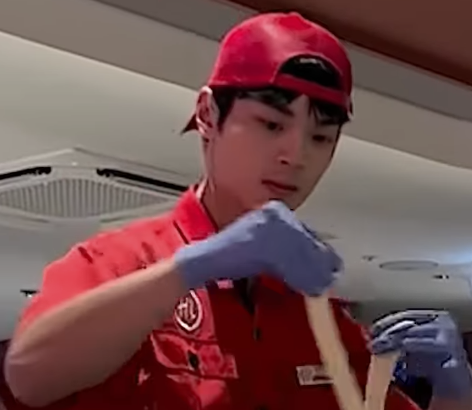 공개된 영상에는 대구의 하이디라오의 남성 직원이 '쿵푸면' 퍼포먼스를 펼치는 모습이 담겼다. 쿵푸면은 하이디라오에서 제공하는 수타면으로, 직원이 곡예 하듯이 면을 뽑아내는 퍼포먼스와 함께 제공된다.