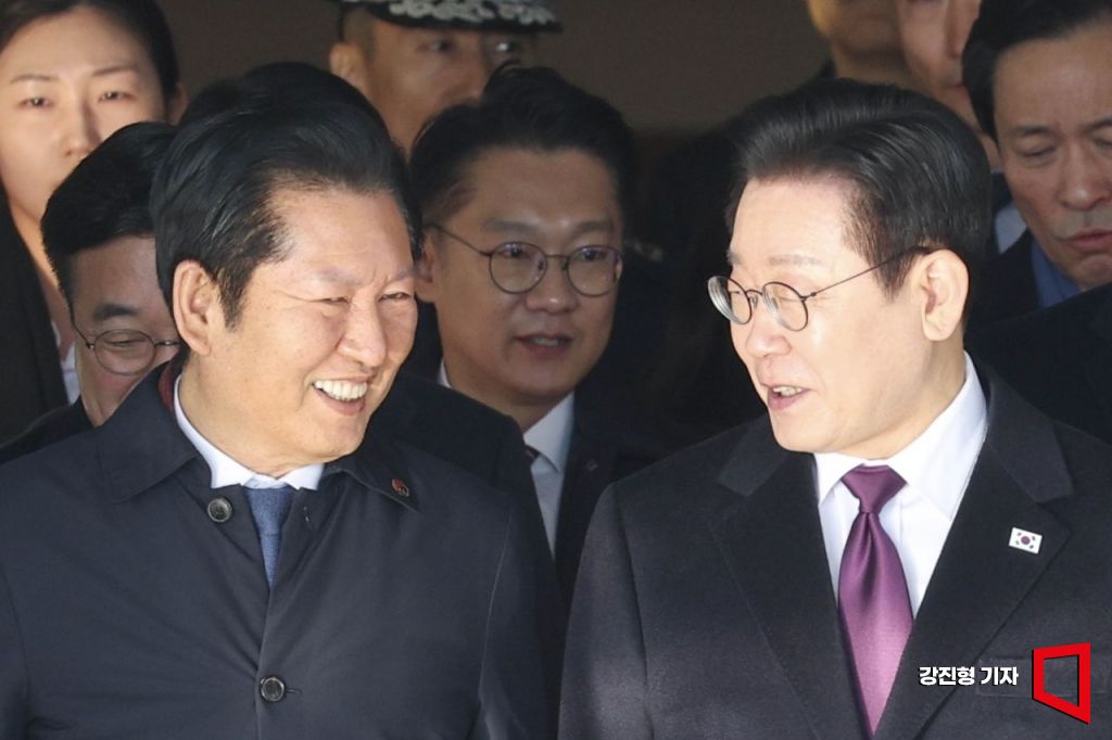 다카이치 사나에 일본 총리와 정상회담을 앞둔 이재명 대통령이 12일 경기 성남 서울공항에서 출국하기 위해 전용기로 이동하며 정청래 더불어민주당 대표와 대화 하고 있다. 2026.1.13 강진형 기자