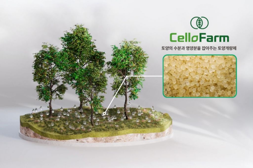 셀로팜은 의약과 식품 등 다양한 산업에 쓰이는 스페셜티 소재인 셀룰로스 유도체를 기반으로 만든 토양개량제다. 제품 무게 대비 8~10배의 수분을 흡수한 뒤 서서히 방출해 물이 부족한 토양에서도 작물과 수목의 생장을 돕는다. 토양 속 영양분이 빗물에 씻겨 내려가지 않고 오래 남도록 해 농작물 수확량 증가에도 기여한다.