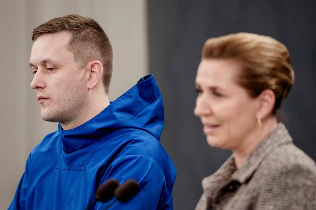 옌스-프레데리크 닐센 그린란드 총리(왼쪽)와 메테 프레데릭센 덴마크 총리가 13일(현지시간) 덴마크 코펜하겐에서 기자회견을 하고 있다. AFP연합뉴스