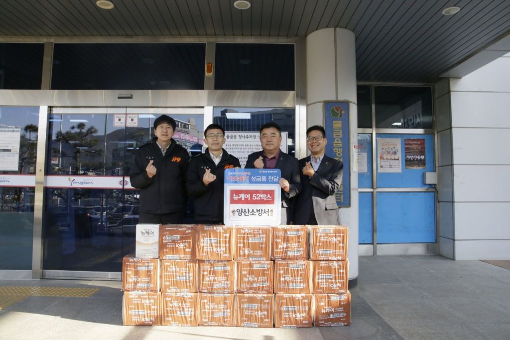 경남 양산시 물금읍은 14일 양산소방서(서장 최경범)에서 2025년 경남도 공직자 청렴 자기관리 우수부서(소방 분야) 2위에 선정돼 받은 상금 100만원으로 영양음료인 뉴케어 52박스를 구매해 기부했다고 전했다.