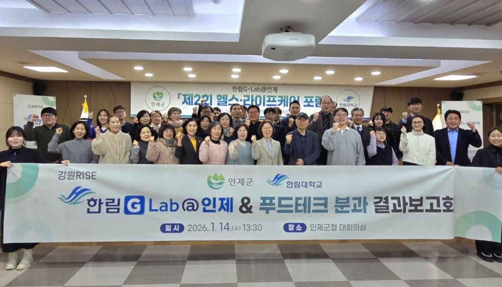한림대학교(총장 최양희)가 1월 14일(수) 인제군청에서 '2025 한림 G-Lab&푸드테크 분과 통합 결과보고회'를 개최했다.